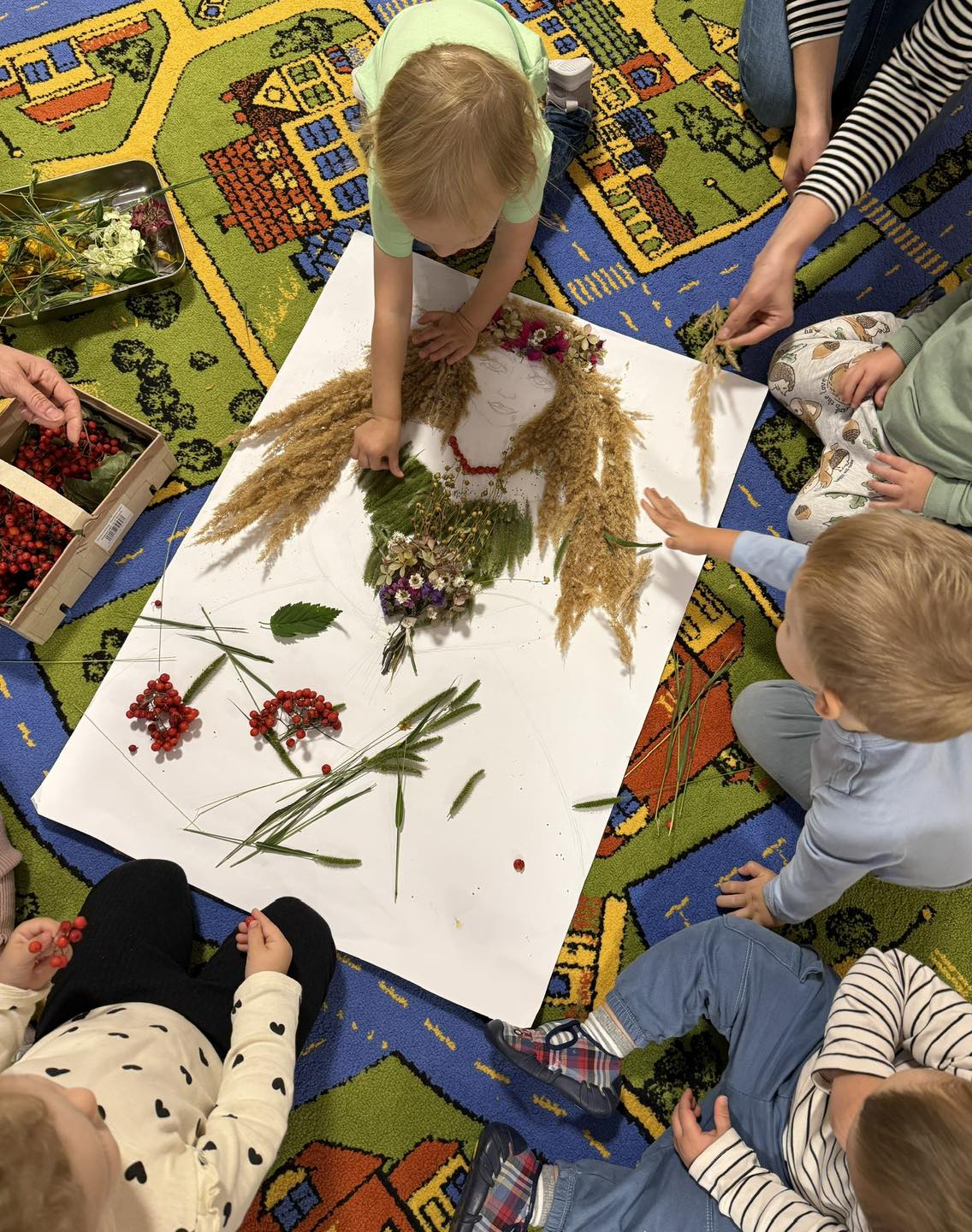 Podczas wspólnego przygotowywania pracy konkursowej, odkrywaliśmy uroki jesieni wszystkimi zmysłami – dotykaliśmy, wąchaliśmy, słuchaliśmy i obserwowaliśmy jesienne skarby natury!